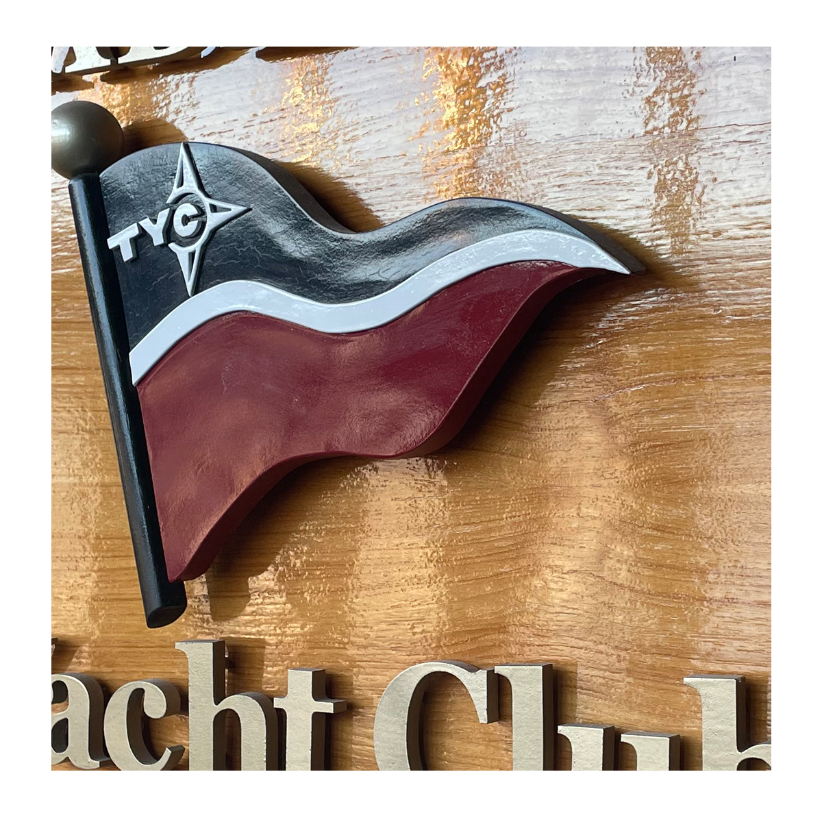 36x24 Sign created from Solid teak for the framing. Veneer Teak plywood and a combination of MDF and Poplar for the remaing pieces.