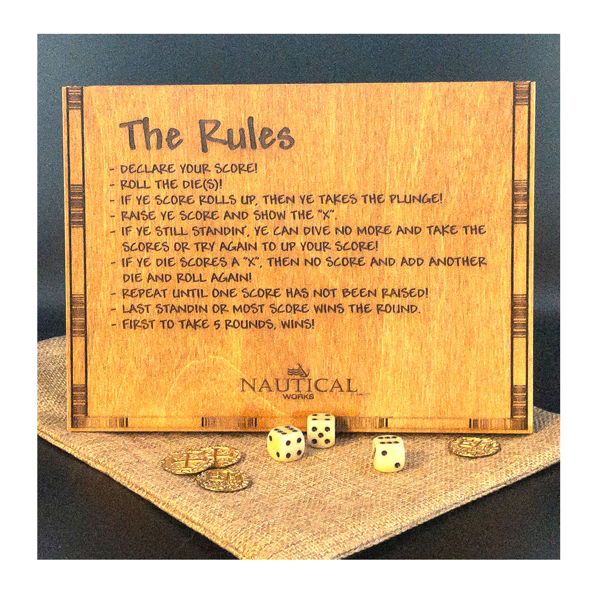 This Dice game will allow up to Six Players to outlast each other and save themselves from taking the Plunge off the Willy T.